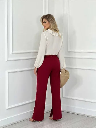 CALÇA BRIGIDA é uma peça de roupa sofisticada, versátil e elegante, perfeita para um visual casual e ao mesmo tempo chique para várias ocasiões. Comprimento alongado, passante, bolso faca lateral, bolso embutido fake posterior, fechamento em colchete interno frontal. -Colchete -Bolso -Passante