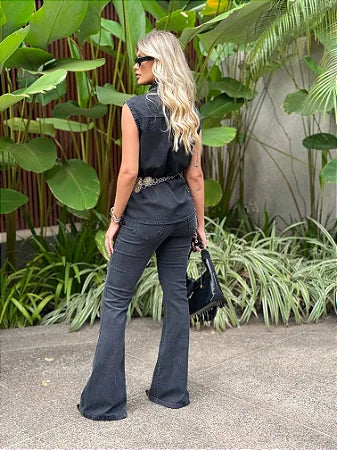 CALÇA MELINA ARAGON é uma peça de roupa sofisticada, versátil e elegante, perfeita para um visual casual e ao mesmo tempo chique para várias ocasiões. Comprimento alongado, passante, modelo flare, bolso faca lateral, bolso posterior, fechamento em zíper e botão frontal. -Zíper -Bolso -Passante